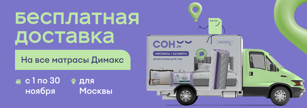 При покупке любого матраса Dimax получите подушку «Молли» в подарок, а за двуспальный – сразу две.